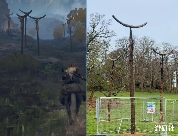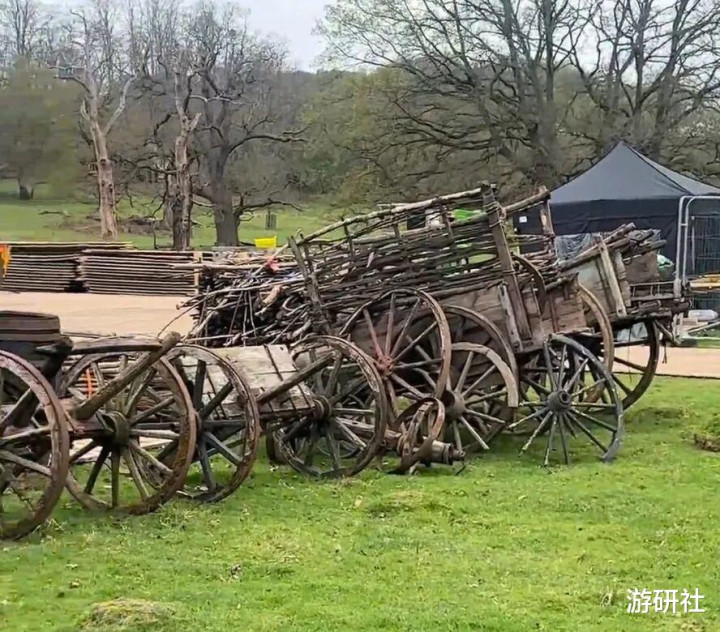 还有推测认为,视频中的场景还原的是游戏首张大地图“宁姆格福”。其依据不仅包括玛莉卡教堂和木桶马车等置景道具,还结合了英国当地的天气景观以及片场出现的大量受刑架。